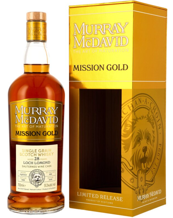 Wir bleiben bei Krachern, nur liegt nun ein 28jähriger Single Grain aus der Loch Lomond-Brennerei mit einem Sauternes Cask-Finish in der Auslage.