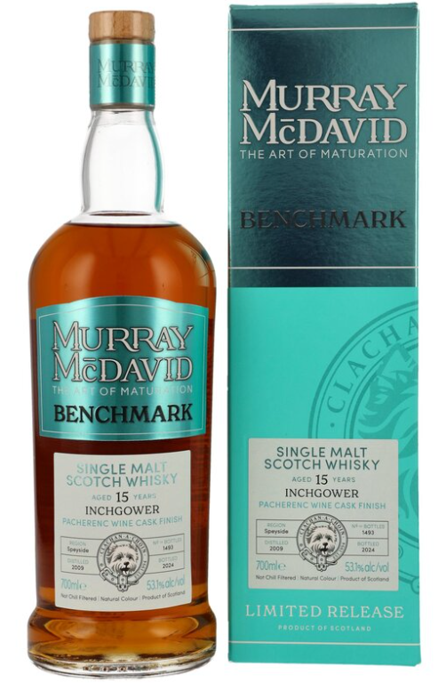 Der letzte Murray McDavid-Whisky ist ein Inchgower, der ein Pacherenc Wine Cask-Finish erhalten hat. Der Alkohol liegt bei 53,1%.