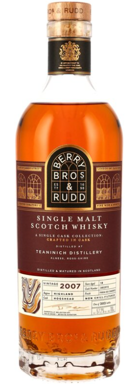 18 Jahre reifte dieser Single Malt zunächst im Hogshead #302372, bevor er sein charakteristisches Pineau des Charentes Finish erhielt. Diese französische Spezialität aus der Cognac-Region verleiht dem Teaninich seine bernsteingoldene Farbe und komplexe Aromenvielfalt. Berry Bros. & Rudd, Großbritanniens ältester Wein- und Spirituosenhändler seit 1698, hat diesen Fassstärke-Whisky mit 57,2% vol. ohne Kühlfiltration und künstliche Farbstoffe abgefüllt. Die Teaninich Distillery, gegründet 1817 in den nordöstlichen Highlands, verwendet als eine der wenigen Brennereien einen Maischfilter statt traditioneller Maischbottiche – ein Verfahren, das dem Whisky seine besondere Textur verleiht.